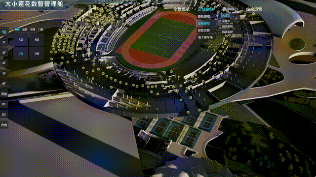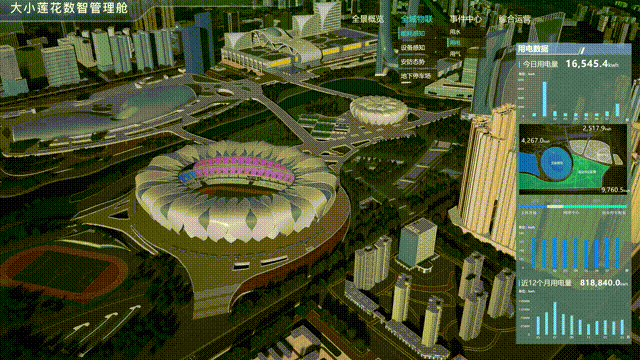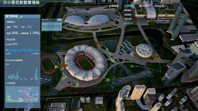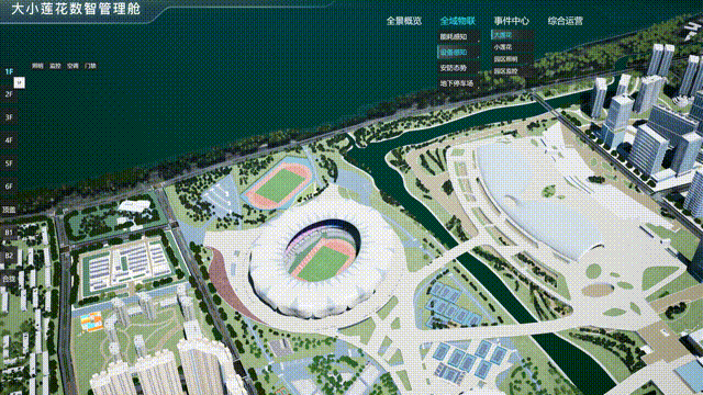 大小莲花数字驾驶舱将整个亚运会园区滨江区块的物理空间,这是一个与奥体中心平行的数字孪生底座,与真实世界的地理坐标系完全一致,细如馆内控台仪表,所有设备全部通过数字孪生技术3D建模重塑。亚运会园区大小莲花场馆内,有四五十套弱电子系统,共有95类设备,合计2万多个智能物联设备,复杂程度可以想象。在智慧化升级改造过程中,他们将不具备智能物联能力的设备进行改造,并将2万多个设备接入了同一套系统。系统就能承载真实世界中产生的一切业务数据、人车数据及事件信息,全面感知园区运行态势,并对异常设备及突发事件精准定位,确保园区运维人员对各种各样的设备,都能数得清、看得到、管得好。大小莲花数字驾驶舱通过 2D 面板呈现将能耗、人员、停车等数据,有效、及时地做到事前预警、事中监测、事后分析,提高亚运会园区管理效率,提升亚运会园区的安全指数,推动亚运会园区的智能化发展。亚运会园区减碳措施主要涉及场馆和基础设施建设过程,低碳交通和场馆运行的减碳措施主要体现在赛事期间,通过2D面板实时展示能用消耗量、能源消费强度。通过人工智能和大数据技术,对亚运会园区内的人群态势感知、应急事件处置进行高度智慧化管理,提供包含人流量统计分析(员工、访客、安保等)、人群热力图分布、人群密度检测、人员身份、人员倒地检测等功能,为园区运维人员提供准确的人流统计以及行为分析数据。大小莲花户外共有10片半网球场、2片排球场、2片篮球场、4片排球场、大莲花有8万多个座位,亚运会园区场馆基于现有闸机进行升级改造,对接了亚运票务主运营商大麦,实现了刷身份证、刷电子票等“票证人”组合核销方式,亚运会期间能保障30分钟入场8万多名观众入场,在亚运赛后将对民众开放,市民可以通过浙里办等多个渠道进行线上购票、刷码进出闸机,真正做到无人值守。